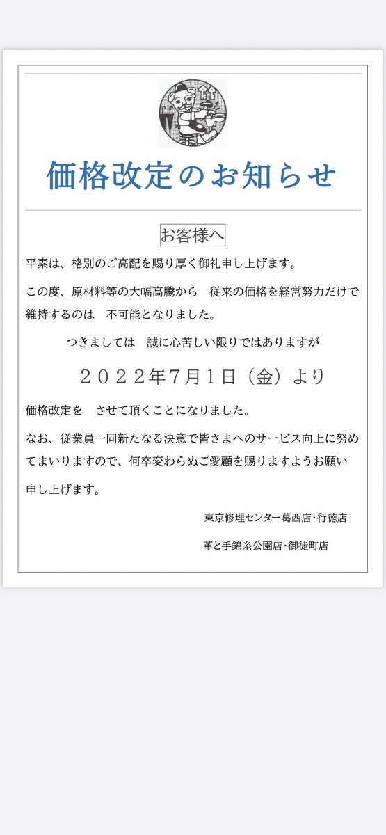 価格改定のお知らせ