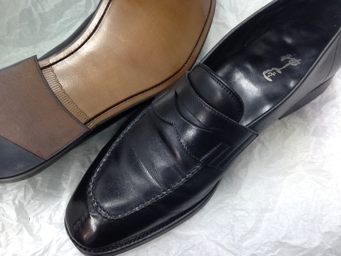 レザーソールに追加でゴム半張りとヴィンテージスティールを施してあります。