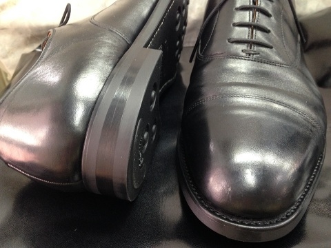 かかとはスタックヒールを仕上げ直しでややツヤ有りで。