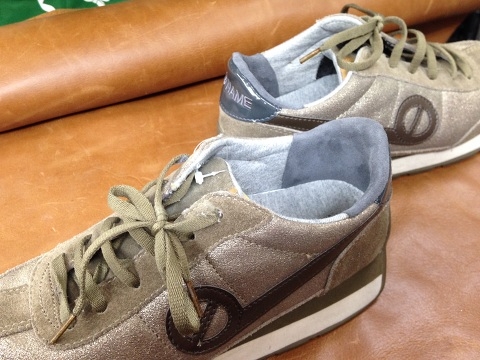 紐を通す羽根と、甲のスエードのミシン目をほどいてから