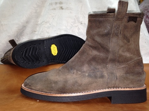 かかとの減りが多いですが、写真のようなオールソールも純正のクレープゴムで直してます。