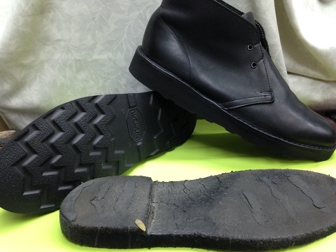 今日は、またまた巻き込みクレープソールの交換をしましたので
